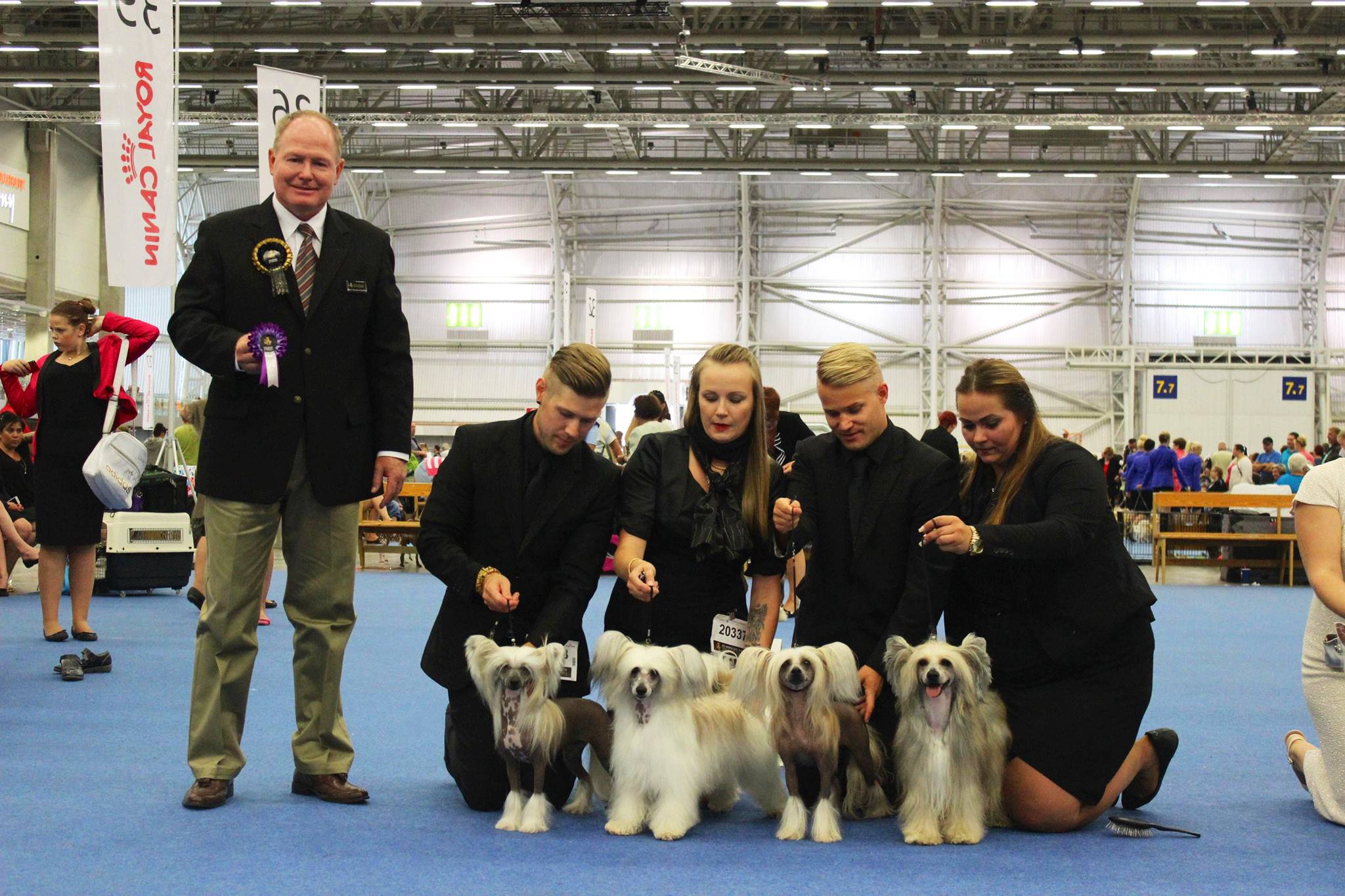 Arte Figure winning Best of Breed breeders group at Helsinki WDS 2014