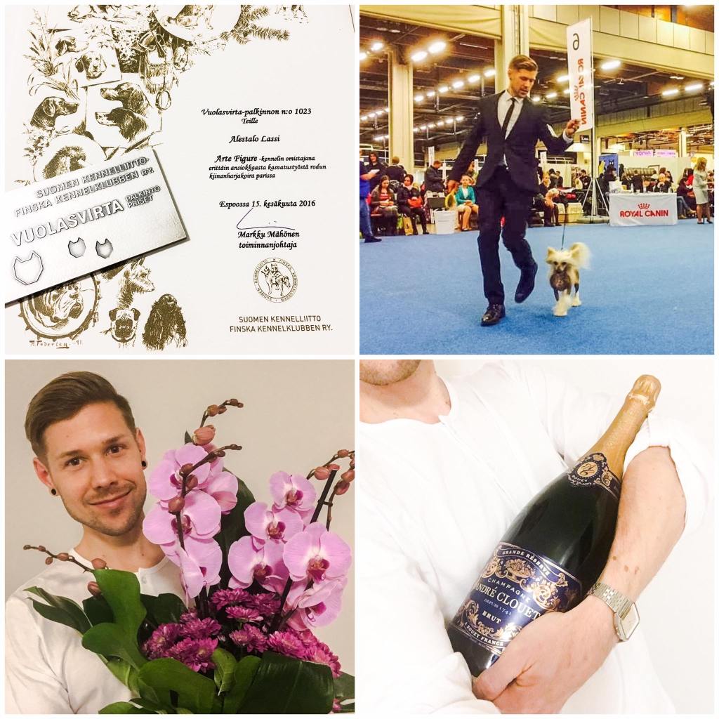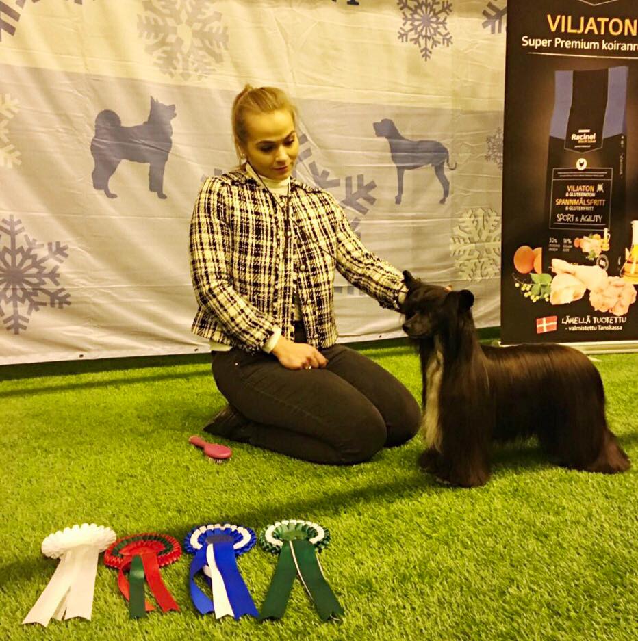 Sorry for the long radio silence but… better late than never! WE HAVE A NEW FINNISH & SWEDISH CHAMPION!!! 15.1.2017 at Kajaani Int. Show HRCH EEJCH EEJW16 TLNJW16 TLNW16 AMSJW15 HEJW15 HEW15 Arte Figure Kiss Kiss “Kisu” won BOS with CAC & CACIB under judge Kurt Nilsson from Sweden! Huge congratulations and biggest thank you to Kisu’s super talented groomer, handler and co-owner Kata! ❤️❤