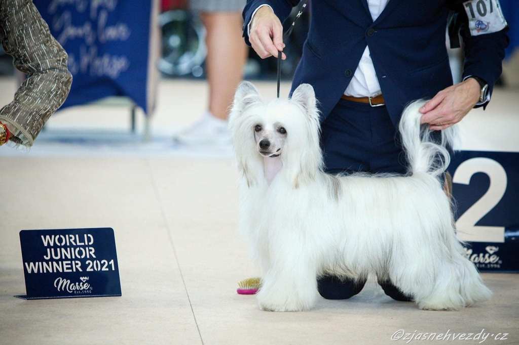 Next day 19.12.2021 at the Finnish Winner it was the other way around – CZ JCH JWW-21 HeJW-21 HeW-21 Arte Figure One Of Those ”Troye” won the junior class becoming FIJW-21 and 2nd Best Male. MultiCh MultiW Arte Figure Happy Ending ”Kaya” won the veteran class becoming FIVW-21, then Best Female becoming FIW-21 and finally BEST OF BREED VETERAN & BEST OF BREED! The judge was breed specialist Jeanett Lemmeke Kennel Jean Dark, Sweden.